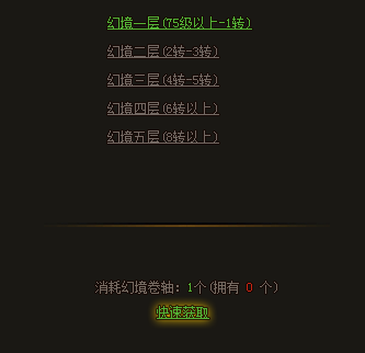 每次进入幻境需要消耗【幻境卷轴】1个,可以通过礼券快速购买。