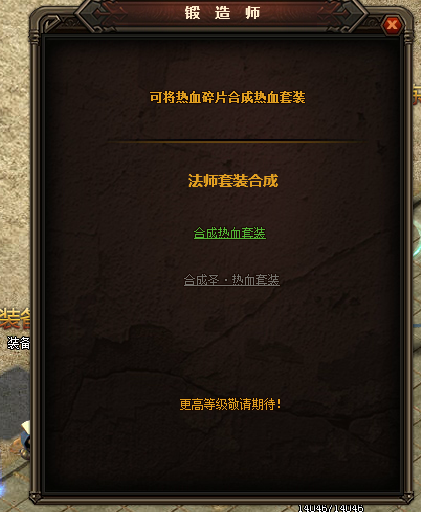 新的热血套装可以通过收集热血碎片,在土城热血套装合成人那里进行合成。
