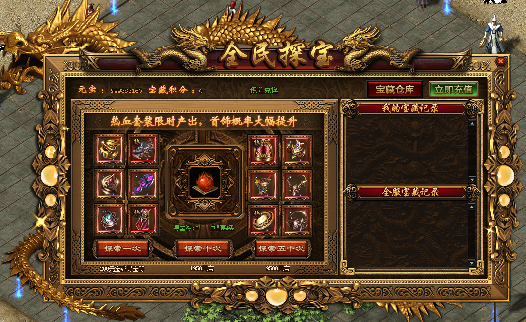 ,进入寻宝界面。寻宝可以直接获得热血装备: