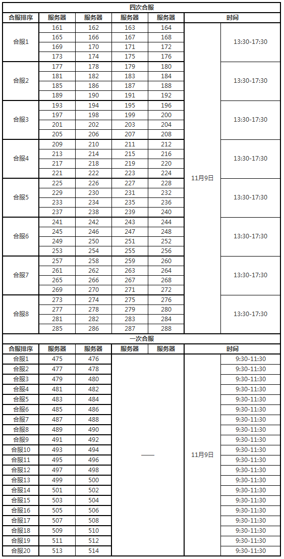 【合区公告】11月9日部分区服合服公告