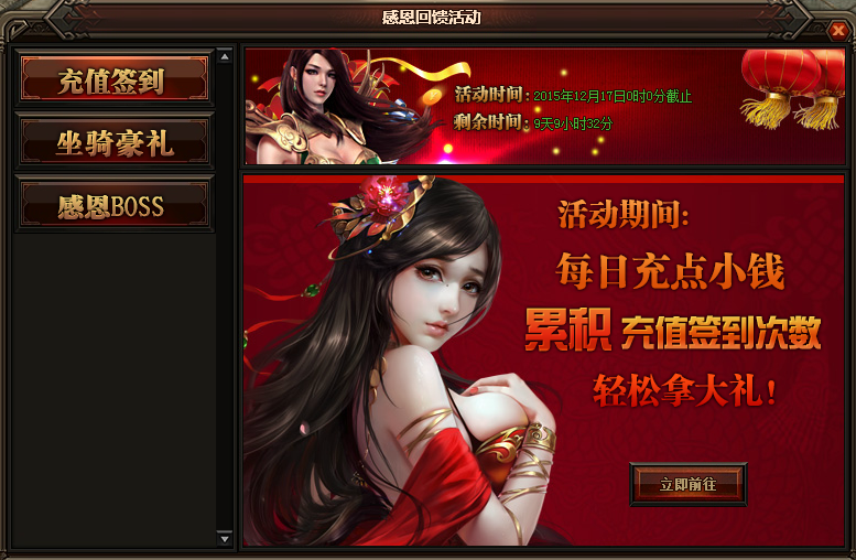 【活动说明】活动期间吗,每日充点小钱,累积充值签到次数,即可轻松拿大礼!