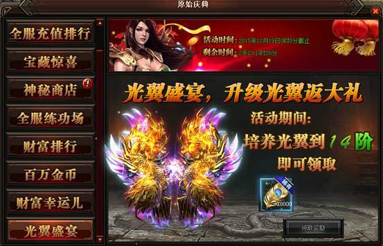 活动详情:活动期间玩家升级翅膀就可以获得羽毛返利。