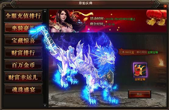 活动详情:活动期间玩家可以购买坐骑宝箱,开启宝箱可获得坐骑碎片,也有几率获得完整坐骑哦。开宝箱获得的坐骑碎片是直接发放到背包里的。