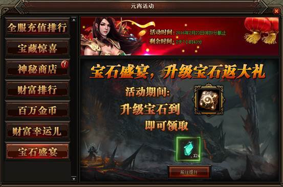 活动详情:活动期间玩家升级宝石就可以获得宝石结晶返利。