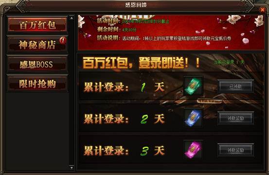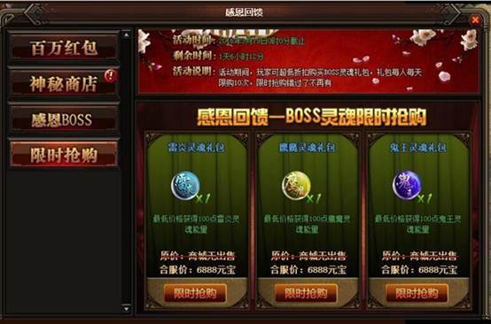 活动详情:动期间登录就送红包代金券,玩家在商城内单次购买消耗元宝数量超过一定元宝就可使用低价卷,购买道具时勾选使用低价卷。