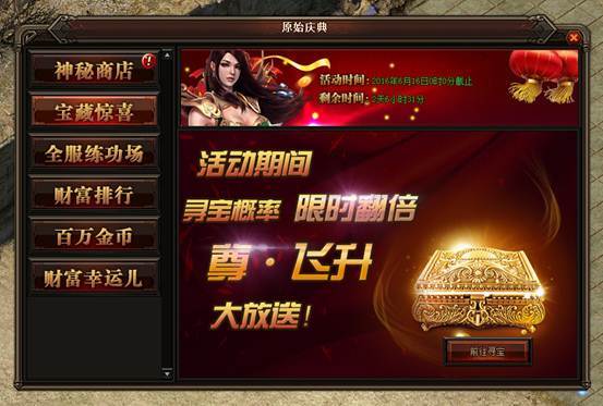 活动详情:活动期间寻宝概率限时翻倍,尊、飞升装备大放送咯,小伙伴们千万不要错过哦~
