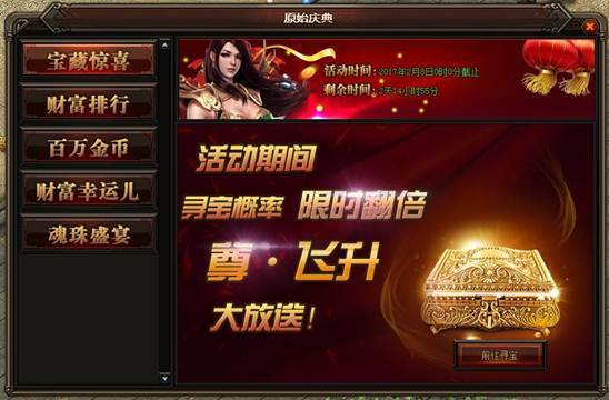 活动详情:活动期间寻宝概率限时翻倍,更有几率直接开出尊·飞升装备哦~