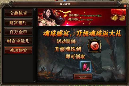 活动详情:魂珠盛宴,升级魂珠返大礼,活动期间升级魂珠达到对应要求既可领取大礼,快快参与吧!