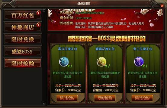 活动详情:活动期间玩家可以以超低的折扣价格购买豪华礼包,每种礼包每个玩家只能购买一次,小伙伴们不要错过哦。