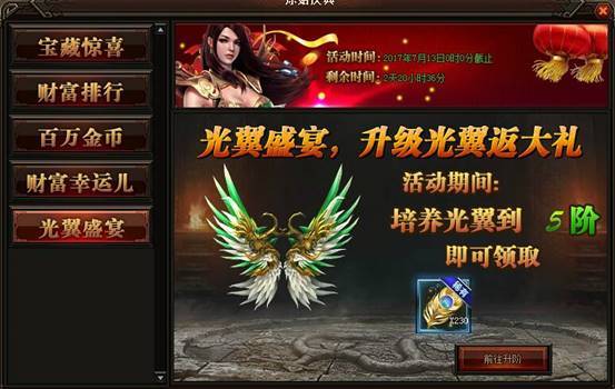 活动详情:活动期间光翼盛宴,升级光翼返大礼,快快行动吧